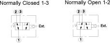 - Minimum pilot pressure to operate = 20 psi + port 1 pressure/100 psi