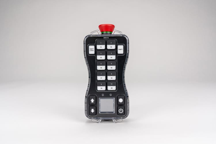 When you need complex machine control in the palm of one hand, look no further than the Ranger Transmitter. The Ranger transmitter was designed with the industrial crane market in mind, yet is well-suited for most mobile machine control applications. Configurable keypad engraving and custom receiver programming allow the Ranger to control up to 22 separate machine operations. Two-step buttons with haptic feedback are also available on this model.