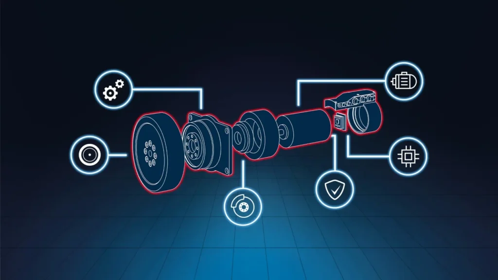 - Wheel, gearbox, brake, motor, encoder, and motion controllers